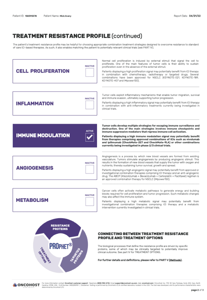 PROphet® analyzes proteomic changes in blood samples to monitor the dynamics of biological processes induced by the patient (i.e., the host) in response to a given cancer therapy. This proteomic profile is highly predictive of individual patient outcomes, thus enabling personalized treatment planning.